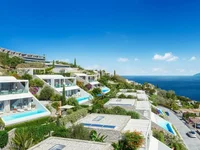 Terrace Villas are 2 bedroom villas, these spacious villas combine both comfort and privacy. They combine beautiful interior space 240sq.m and outside area 530sq.m. Interior is full of light and magnificent uninterrupted views to Mirabello Bay and Agios Nikolaos. It consists of 2 levels connected with internal staircase. The 1st level consists of an open plan living room area with kitchen and 1 bathroom. The 2nd level consists of 2 bedrooms with front sea views, 2 bathrooms and 1 dressing/storage room. Parking area, beautiful garden with sitting area and swimming pool are some of the important extras that come along with this residence. Please check the 2 bedroom villas details below or check the 3 bedroom villa here