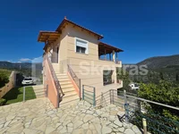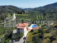 Just outside the village of Nea Epidavros, a detached house with a total area of 202 sq.m. is available for sale within an olive grove of 4,130 sq.m. The house is situated on a sloping plot of land and consists of three levels. On the first level, the ground floor, there is a partially autonomous apartment consisting of a spacious open-plan kitchen-living room, a bathroom, and a comfortable bedroom with a large wardrobe. Via an internal staircase, we access the second level, a raised ground floor, where there are three bedrooms, one of which is a master bedroom with its own bathroom and walk-in closet, as well as another bathroom. On the third and final level, the first floor, there is the living room of the house, a separate kitchen, and a guest toilet. It is worth mentioning that on this level, we have access to the main balcony of the house, which offers a beautiful open view. The plot of land is landscaped with a driveway that provides direct access to a covered parking area of 48 sq.m. for three cars. This layout continues with the stone-paved area of the covered BBQ and the swimming pool. The house features air conditioning, autonomous oil heating, aluminum frames with electric shutters and double glazing, screens, solar water heater, and an alarm system. An ideal home for someone seeking tranquility and the beauty of the natural landscape. It is worth noting that the house is only 7 km away from the beach of Nea Epidavros and approximately 150 km from the airport.