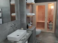 For sale duplex of 126 sq.meters in the suburbs of Thessaloniki. The duplex is situated on ground floor and semi-first floor. Ground floor consists of living room, one kitchen, one WC, one sauna. Semi-first floor consists of one bedroom, one WC. A magnificent view of the city opens up from the windows. There are: a fireplace, air conditioning, heating. The owners will be leaving the furniture with the sale. Extras included with the property: garden.