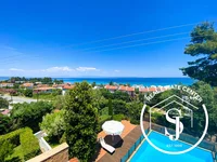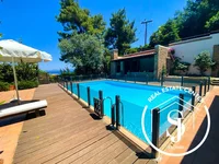 Luxurious traditional 5-bedroom villa with views, all high-quality finishes, and chic design using plenty of natural wood. The villa is in a private plot of 1000 m in an exclusive area and in pristine turn-key condition with some furniture. The villa has a lovely sea view and overlooks where the sun sets in POLIHRONO. Some other houses overlook the rustic woods of protected land, very private. With a private pool along with manicured gardens, an outside paddle kiosk with a kitchen, and an outside kids’ area. The house is designed with exquisite taste, and finishes such as indoor “Ibicenco” stone walls mixed with contemporary floor-to-ceiling sliding glass doors and other interior design details make it a very interesting and gorgeous space. At the same time, it brings outdoor views and spaces to the indoor areas, with lots of light clarity and clean lines. Very airy and open, the perfect place to relax and enjoy Greece’s weather and views. Great location (200 m from the sandy beach), houses are within a short walk to Polihrono, in the finest beaches, where you can enjoy the sun, white sands, turquoise waters, and of course, some impressive sunsets. Also, well-known beaches such as Ksenia, Glarokamvos, and many more are just a short drive away. SUPER GREAT RENTAL INCOME, EXCLUSIVE LISTING, CALL US TODAY (JAMESON REAL ESTATE) NEGOTIABLE!!!