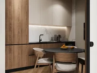 Flat has front layout. A view of the city opens up from the windows. There are: solar panels for water heating, air conditioning, heating. Building has an elevator. Extras included with the property: parking space.