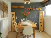 Loft apartment 61 sqm in a complex of independent houses on a plot of 1000sqm, with a landscaped garden. The house has a living room, kitchen, bathroom and attic divided into two rooms. It has a parking space, independent heating with its own burner, security cameras and alarm. Distance from the sea 500 meters.