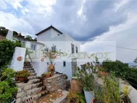 For sale traditional detached house in Hydra, in one of the island`s most beautiful locations, this property offers an unobstructed and unique view of the main port, the port of Kamini, the land opposite, and the coastlines of Athens and Spetses. The island is the one of the historical islands of Greece, and many properties belongs to global famous personalities. The residential real estate comprises two separate buildings situated on adjacent plots, with a total area of 400 sq m. The main residence, a 158 sq m stone-built house, sits on a 323 sq m plot and spans three levels, accessible from the main entrance in the courtyard along the municipal road. The second building, a 74 sq m stone structure in need of restoration, is located on the adjoining 74 sq m plot and features an independent entrance from the municipal road. The garden of the main house includes a secondary entrance along the side municipal road, positioned right next to the 74 sq m building. Defined by exceptional artistic taste, the residence embodies the distinctive aesthetic of Hydra—marked by simplicity, intellectual depth, and minimalism. These very qualities have long made Hydra a magnet for renowned artists, esteemed intellectuals and scientists, as well as prominent business figures, both Greek and international. Entirely handcrafted, the residence is enclosed by high stone walls which nevertheless allow breathtaking panoramic views thanks to the natural slope of the mountain. The views of the settlement, the sea, and the surrounding landscape stretching to the horizon feel like a living painting. On the first level, just beyond the main entrance of the courtyard, there are two independent guest rooms, each featuring a built-in double bed, a private bathroom, an open-plan kitchen and living area. Both rooms overlook the expansive 100 sq m courtyard, which includes built-in flower beds, a stone oven, a stone seating area with an adjoining stone table, and a 30 sq m pergola with a marble table for six, naturally shaded by embracing vines and jasmine. The courtyard offers a breathtaking, unobstructed view of the sea, the land opposite, the port of Hydra, and Athens. 1 Twelve handcrafted stone steps lead to the second level, where the main entrance of the house opens into a spacious living room with a fireplace, a dining area featuring a marble table for eight, a raised seating nook accessed by six steps, a TV area, and a versatile work or snack table. This level also houses the kitchen and a guest WC. Four balcony doors and a window lead to three expansive verandas wrapping around three sides of the building, offering a mesmerizing 270-degree panoramic view. The scenery transforms with the shifting light throughout the day, while the sunset is an experience beyond words. The entrance terrace, spanning over 20 sq m, features a built-in stone U-shaped seating area with a permanent marble table for 12 and space for two additional smaller tables—an ideal setting for gatherings with friends and loved ones, creating unforgettable memories. The western terrace includes a courtyard at a raised level of six steps which is sheltered from the wind and complemented by two stone storage sheds, a pergola, and a native giant ficus tree. On the third level, accessed via an internal wooden staircase of 12 steps, lies the main bedroom with an en-suite bathroom, the second fireplace of the house, a large westernfacing window, and two balcony doors leading to a 20 sq m veranda. Thi...