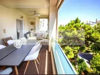 Varkiza south of Athens, in the center of the municipality, 2nd-3rd floor maisonette and studio 50 sq.m. total area 215 sq.m. corner airy and bright, luxury construction, in a quiet and green environment, 250 meters from the beach. It consists of: 83 sq.m. 2nd floor with 3 bedrooms (1 master), 1 bathroom and dressing room. 82 sq.m. on the 3rd floor with a large living-dining room with an energy fireplace, a single kitchen with built-in appliances, an office space and 1 wc. The studio of 50 sq.m. on the roof it is arranged in a living room - kitchen, 1 bedroom, bathroom and roof garden, bbq and pergola with an unlimited view. The maisonette has large terraces on each level with a sea view and is surrounded by a green garden. It functions as a smart home, has 2 underground parking spaces, autonomous oil heating, alarm system, video door entry, security doors, air conditioning unit, solar, storage room, access for the disabled, tiled floors in the living room and oak floors in the bedrooms, window frames aluminum with electric roller blinds, double glazed screens and is close to transport, market and park