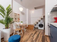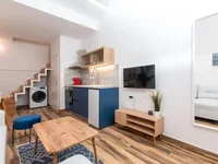 For sale apartment of 34 sq.meters in Thessaloniki. The apartment has 2 levels. Ground floor consists of living room with kitchen, one shower WC. Loft consists of one bedroom. Flat has front layout. A view of the city opens up from the windows. There are: air conditioning, heating. The owners will be leaving the furniture with the sale.