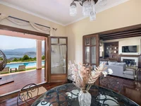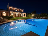 It is built on a private plot of land of 3800m², situated on a hillside, enjoying breathtaking panoramic sea views of Souda bay and the White Mountains of Crete. The property features also a 70m² tiled swimming pool, surrounded by shaded areas and lush landscaped gardens.