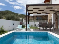 The villa is fully furnished and stands out for its high aesthetics and modern comforts. It features a private pool, a beautiful garden with lawn, a built-in BBQ, and relaxation areas perfect for unforgettable moments with family and friends.