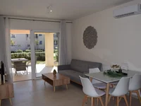 This apartment for sale in Pyrgos Psilonerou, Maleme, Chania is a recently built ground-floor unit offering comfortable living close to the sea. It comes fully furnished and includes two bedrooms, two bathrooms, a modern kitchen, and an open-plan living and dining space-ready for you to move in right away.