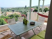 A magnificent view of the city, the sea, the mountain opens up from the windows. There are: solar panels for water heating, a fireplace, air conditioning, heating, a barbecue area. There is an alarm system installed. Extras included with the property: parking space, garden.