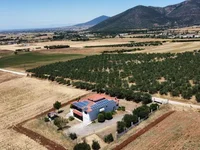 In a lush, green location in Galarinos, just minutes from Agia Anastasia and with easy access to Thessaloniki. A detached luxury house of 150 m² with a 200 m² semi-basement, on a private 15,000 m² plot, of which 2,000 m² are landscaped and fenced.