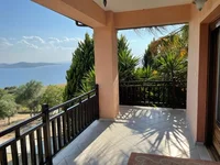 The house has a well-thought-out layout with spacious balconies and an internal staircase connecting all three levels. The garden has a barbecue and is planted with palm and olive trees. It is only 1 km from the sea and 4.6 km from the nearest settlement, which provides an ideal combination of privacy and accessibility.