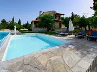 The air-conditioned villa offers modern amenities such as a flat-screen TV with streaming services, a washing machine and soundproof walls for absolute peace. The stylish minibar invites you to relaxing moments, while the garden view from the windows brings nature inside. The outdoor area is a real gem of the villa. The impressive swimming pool with a view offers refreshing dips and relaxing moments, while the sunny terrace is perfect for morning coffee or evening wine. The beautifully landscaped garden includes a playground for the little ones and a picnic area, ideal for family gatherings. On the ground floor there is a billiards table which is an excellent opportunity for friendly matches. Barbecue lovers will enjoy the special facilities that allow the preparation of delicious meals in the open air. The area is ideal for horse riding enthusiasts - you can hire an experienced instructor or enjoy a romantic horse ride on your own, exploring the surrounding landscapes.