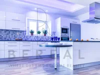 The villa has six spacious bedrooms, offering plenty of space for families and guests. There are two fully equipped living rooms and two modern kitchens, allowing for independent living on each level or comfortable hosting of large groups. The four bathrooms are designed with functionality and aesthetics, covering the needs of all residents. Heating and cooling are provided by air conditioning, while the sliding aluminum frames and double glazing offer excellent sound and thermal insulation, while allowing light to flood the spaces. The wooden floors add warmth and elegance to the entire interior of the villa.