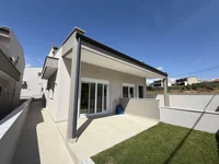 A townhouse of 82 sq.m is for sale in Nikiti, Sithonia. The ground floor includes a spacious living room with kitchen, one bedroom, and a bathroom with a shower. The first floor offers another bedroom and an additional bathroom with a shower. Each room is equipped with air conditioning. Solar panels are installed for hot water. One parking space is included in the price. This is an excellent option for comfortable seaside living or for rental investment.