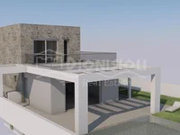 The modern villa is located in Dionisiou Paralia village 500 meters to the sandy beach.