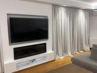Flat has front layout. A magnificent view of the city opens up from the windows. There are: solar panels for water heating, a fireplace, air conditioning, awnings, heating. The owners will be leaving the furniture with the sale. Building has an elevator. There is an alarm system installed. Extras included with the property: garden, garage.