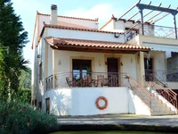 The house is in a very quiet neighbourhood with other cottages, 15 km from the center of Chalkida. The residence consists of 5 bedrooms, a living room with a fireplace, kitchen, dining room and two bathrooms. It is fully furnished, with air conditioning, radiator, TV, security alarm, wifi internet, balconies with panoramic view over the sea and parking.