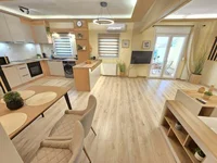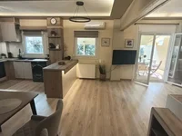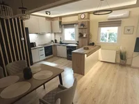 For sale apartment of 80 sq.meters in Thessaloniki. The apartment is situated on the ground floor. It consists of 2 bedrooms, living room with kitchen, one dining room, one shower WC. Flat has double-frontage layout. There are: solar panels for water heating, air conditioning, awnings, heating. The owners will be leaving the furniture with the sale. There is an alarm system installed. Extras included with the property: garden.