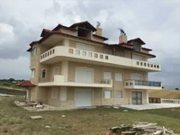 For sale 5-storey house of 560 sq.meters in the suburbs of Thessaloniki. Semi-basement consists of one bedroom, living room with kitchen, one bathroom, one storeroom. Ground floor consists of 2 bedrooms, living room with kitchen, one bathroom. 1st floor consists of one bedroom, living room with kitchen, one WC. 2nd floor consists of 2 bedrooms, living room with kitchen, one bathroom, one shower WC. 3rd floor consists of one bedroom, living room, one bathroom, one storeroom. A magnificent view of the sea, the mountain, the forest opens up from the windows. There are: a fireplace. The owners will be leaving the furniture with the sale. Building has an elevator. Extras included with the property: parking space, garden, garage.