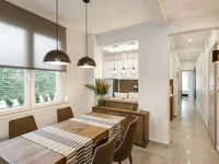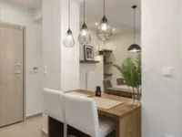 For sale apartment of 85 sq.meters in Thessaloniki. The apartment is situated on the 7th floor. It consists of 2 bedrooms, living room with kitchen, one bathroom. Flat has interior layout. There are: air conditioning, awnings, heating. The owners will be leaving the furniture with the sale. Building has an elevator. There is an alarm system installed.