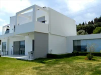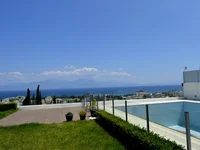 Description of exterior and interior spaces: The villa, spanning 484 sq.m., is set on a 600 sq.m. plot, surrounded by a well-maintained garden with Mediterranean flora. The exterior is characterized by its white facade and lines reflecting traditional Greek aesthetics. The private pool offers relaxation with views of the sea and mountains, while the veranda is perfect for enjoyable summer afternoons. The interior spaces are spacious and bright, with high-quality materials and contemporary design.