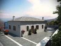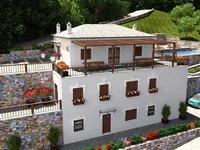We are pleased to offer you a magnificent villa in the picturesque village in the east of Pelion. This wonderful villa has three levels. On the ground floor there is a guest house, presented as a luxurious private apartment area of 57 square meters, parking and storeroom. On the first floor are three spacious bedrooms with ensuite. The master bedroom has an access to veranda of 15 sqm and a private swimming pool of 12 sq.m. There is a fireplace and jacuzzi here. Also on the floor there is a room for staff, space for the laundry room and storage. There is a staircase leading to the second floor. The first floor includes a living room, dining room, kitchen with pantry, bathroom and a dressing room, also there is energy efficient fireplace which heats the whole floor.