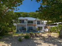 Welcome to Casa Bahia de Serenidad, a stunning beachfront residence nestled in the serene community of Seadancer, Sandy Bay. This exquisite two-level home blends thoughtful design with tasteful decor, offering an idyllic escape with modern comforts.Spacious living with 4 bedrooms, 3 bathrooms,and an office, this home provides ample space for both relaxation and productivity. Enjoy extensive outdoor living areas, including a full outdoor kitchen, inviting pool, and rejuvenating jacuzzi. Direct access to the pristine white sand beach and a shared community dock enhance your seaside experience.Surrounded by lush tropical trees and vibrant flowers, the property offers a tranquil and picturesque setting.Fully equipped with a backup generator and solar panels. Don't miss on beach living.