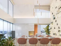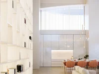 High ceilings combine with floor-to-ceiling windows to create large, bright spaces. Open plan spaces.