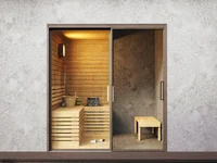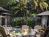 Villa Salty Jim Gwk with a sauna, yoga zone, pool. Landscaping, beautiful architecture and landscaped territory. Villa with interior design and furniture.