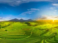 Modern complex in the most popular touristic area in close proximity to the ocean on a plot overlooking picturesque rice fields.