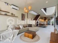 Situated on a generous 160 sqm of land with 143 sqm of well-planned living space, the villa features a spacious enclosed living area, ideal for privacy and year-round comfort. The open-concept layout flows seamlessly from the designer kitchen and dining area into the cozy lounge space, all tastefully appointed with quality furnishings and tropical décor. The two bedrooms are both generous in size, with large windows that bring in natural light and allow you to enjoy the calming Bukit breeze.