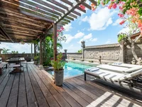 Outside, a stunning 11 x 7-meter private swimming pool invites you to unwind while enjoying breathtaking ocean views over Jimbaran Bay. The north-facing villa ensures ample natural light and refreshing breezes throughout the day.
