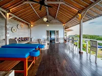 On the second floor are the 3 bedrooms each with their own en-suites as well as a spacious 40m2 deck including bar and massage tables. Lovely views of the ocean across to the Bali mainland from both levels. Epic Mt Agung and sunset vista also.