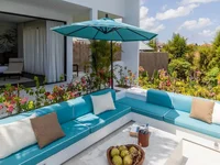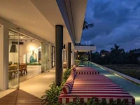 Offered on a FREEHOLD, the south facing villa provides 1200 sqm of stunning indoor/outdoor living accommodation atop a 1500 sqm plot. The 2-storey unique, modern super-villa with its innovative and thermally efficient designs was created for the socially active in mind in 2021. The property is fully furnished with curated furniture, high end finishes and hand-picked art collection, courtesy of internationally-renowned artists with personal links to Bali. Overlooking a calming rice field, the master bedroom boasts an opulent ensuite featuring floor-ceiling marble and an outdoor sunken lounge. A stroll across the lawn leads you to the 4 independent guest rooms, all spectacularly furnished.
