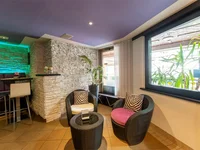Inside, you can find a large bar area dedicated to aperitifs, which offers guests a cozy and inviting ambience.