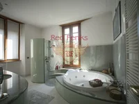 На первом этаже находится главный вход с гардеробом, большая гостиная с переговорной и рабочей зоной, столовая с мраморным камином, мраморная ванная комната и красивая и современная кухня Boffi, из которой вы можете выйти в сад и в столовую. Светящаяся боковая веранда с видом на открытый сад (с электроприводом, с дополнительной вентиляцией и обогревом для зимы) выполнена из железа и небьющегося стекла. Оригинальная каменная лестница с перилами из кованого железа и дуба ведет на верхние этажи.