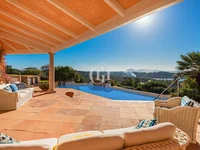 The villa, framed by a well-kept and rich garden and the swimming pool, is all on one floor and enjoys privacy and a wonderful view of Cala di Volpe. The separate, habitable kitchen and the bright living room overlook a furnished portico, ideal for enjoying moments of relaxation in the open air while admiring the view. Continuing we find the master bedroom with walk-in wardrobe and double ensuite bathroom overlooking a small terrace from which one can appreciate a suggestive view of the greenery and the sea; the floor is completed by two more double bedrooms, each with its own bathroom.