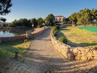 Two farm buildings, tennis court, pool completely dug in the rock.