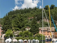 The enchanting frescoed living room evokes a sense of wonder and a sense of immersion and participation in the work of art. It is impossible not to admire the expressiveness of the frescoes, perspectives and scenes depicted. This wonderful house with 3 double bedrooms, one single bedroom and 2 bathrooms overlooks the lake and small harbor of Toscolano Maderno, allowing a boat to be moored just a stone's throw from the palace entrance. A beautiful Italian garden with a terrace, decorated with a romantic trellis with columns on the lake, frames this elegant historic palace and creates a pleasant atmosphere in it. A small detached cottage joins the main building, ideal for up to four people. It is equipped with a separate kitchen, bathroom and room overlooking a small private beach on the lake.
