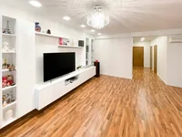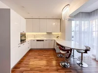 The apartment is fully equipped with designer's built-in furniture and appliances, ready to move in. An alarm system is installed.