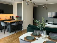 Apartment in Skanstes Virsotnes, panoramic view from the windows to the center of Riga new park. The apartment has a functional layout - a spacious living room combined with a kitchen, two separate bedrooms. In the children's room there is a thematic fresco from Affresco, a large sliding wardrobe, in the master bedroom there is a spacious wardrobe, a Lonos bed. Guest bathroom with a tropical shower Hansgrohe and a stone tray PAA + Huppe, in the master bedroom - a second bathroom with a stone bathtub PAA. Built-in household appliances of class A++ Siemens and Bosch, a drinking water filtration system integrated into the kitchen. Washing machine and dryer Bosch A+++. Parquet in all rooms - light oak. Heated floors in the bathrooms. The apartment after the renovation was almost not used - all plumbing Hansgrohe, furniture and appliances are new. The land is owned, closed territory, well-kept, spacious courtyard with playgrounds. The entrance has 24-hour security, a concierge, an intercom, and three high-speed elevators. The apartment has individual water and electricity meters.A promising area, within walking distance of Arena Riga, Olympic Sports Complex, banks, shops, schools, kindergartens. To the Old Town 3 km - 20 minutes walk.