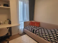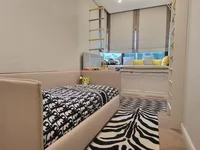 Spacious living room, combined with kitchen and dining area, three isolated bedrooms, room for dressing room, 2 bathrooms. From the living room access to a large terrace (20.55 sq.m.). The design of the apartment was created by architect and designer Alexandra Rudenko.