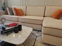 The decoration uses Calacatta Gold stone, Atlas Concorde tiles and German oak parquet. The apartment has Villeroy & Boch plumbing and a Schmid fireplace. The furniture is made to individual order. The fittings used materials Linea Cali and fabrics from Italy.