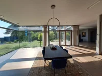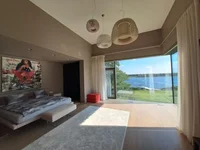 In Jurmala, a modern stylish house is for sale, on the Lielupe River, with its own pier, recreation area and barbecue, summer kitchen and bath. They built for themselves. Only 4 bedrooms, each with its own bathroom and dressing room. On the first floor there is a spacious living room with a fireplace and a cinema, a dining room with access to the terrace, a kitchen, an office, a guest room with its own bathroom, a hardware room. On the second floor there are 4 bedrooms, and a spacious storage room. On the 3rd floor there is a separate room with its own bathroom, gym and access to the observation terrace. Garage for 2 cars. Each room offers a magnificent view of the river or forest. Beautiful landscape design. The house is built qualitatively and according to the latest technology.