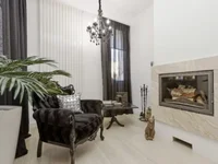 House 1 - area 385 m2. 1st floor: hall, kitchen, living room with fireplace, study, bathroom, boiler room, terrace; 2nd floor: hall, 3 bedrooms, 2 bathrooms with underfloor heating, Finnish bath, steam bath, dressing room, terrace. The house is fully furnished and equipped with household appliances, satellite TV, Internet. The house is built of high quality materials, exclusive design. Two-car garage. The house has autonomous heating, video surveillance, security around the perimeter of the territory.