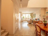 On the 1st floor there is a kitchen, a spacious living area with an exit to the terrace, a storage room, a utility room. The kitchen is equipped with the necessary household appliances - stove, oven, dishwasher, extractor hood, refrigerator.