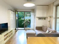 We offer for sale the apartment with its own land plot just in 50 meters from the sea in Dubulti. The apartment has a spacious hall, combined with a kitchen-dining zone and access to the terrace with a land plot, two separate bedrooms and two bathrooms. Terrace and land area of 80 m2 are located in the south, the plot is equipped with artificial grass and a garden furniture.