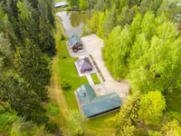 owner's 3-storey house (post-2009) with an area of 630m2, 4 garages with an extension for staff accommodation of 145m2, 1-storey guest house with an area of 111 m2 guest 2-storey house-bath (house) with an area of 112 m2, household building for animals, household building for firewood, cellar, 3 greenhouses (aluminum + glass). 2 pond with fish (sturgeon, carp, pike, molt, eel, crayfish). The entrance to the estate is paved.