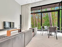 Quiet and respectable neighborhood, sunny side, panoramic windows overlooking the forest and a spacious terrace for your comfort and time with family and friends.