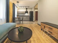The apartment is equipped with all the necessary furniture and appliances. The apartment is decorated in a modern style using natural, high-quality finishing materials. The floors and doors have been preserved and restored.